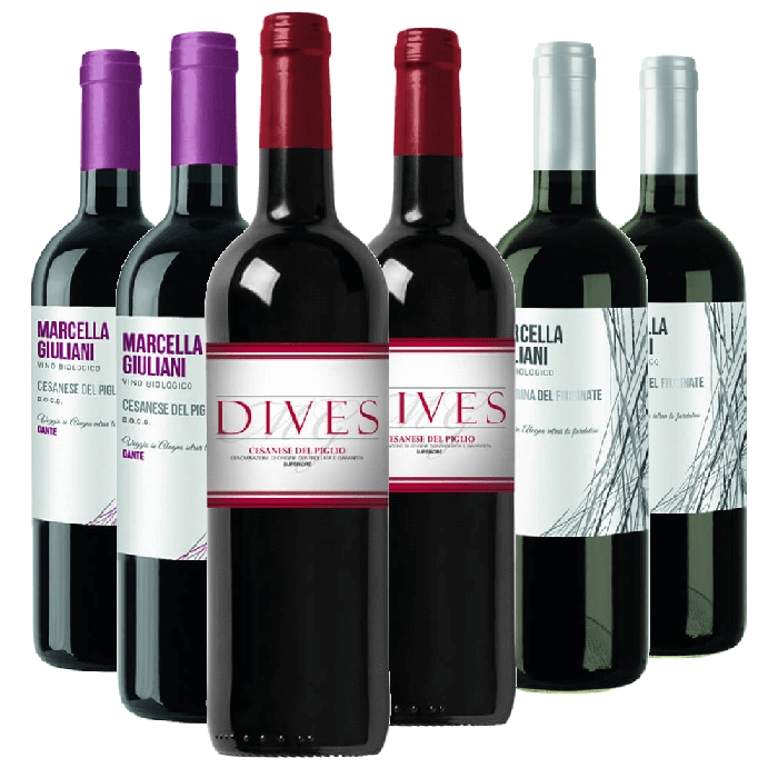 La confezione contiene: 2 bt: Cesanese del Piglio DOCG 2 bt: Passerina del Frusinate IGT 2 bt: Cesanese del Piglio DOCG Riserva Dives Totale 6 bottiglie