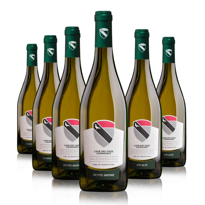 La confezione contiene: 2 bt: Viti Alte Bianco Valle d'Aosta DOC 2 bt: Chardonnay Valle d'Aosta DOC 2 bt: Petite Arvine Valle d'Aosta DOC Totale 6 bottiglie.