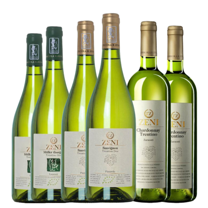 La confezione contiene: 2 bt: Chardonnay Zaraosti Trentino DOC 2 bt: Muller Thurgau Lecroci Trentino DOC BIOLOGICO 2 bt: Sauvignon Piazzole Trentino DOC BIOLOGICO Totale 6 bottiglie