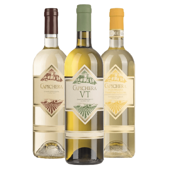 La confezione contiene: 1 bt: Capichera Isola dei Nuraghi IGT 1 bt: Capichera VT Isola dei Nuraghi 1 bt: Vign'Angena Vermentino di Gallura DOCG Totale 3 bottiglie