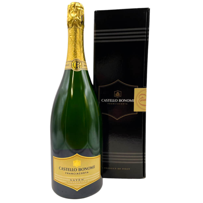 Morbidezza, questa la prima sensazione che affiora degustando Franciacorta Satèn di Castello Bonomi, il “blanc de blanc” dell’azienda, ottenuto dalla vinificazione in purezza di uve Chardonnay del vigneto demominato Villino sul monte, così setoso grazie al procedimento di vinificazione che riduce lo sviluppo della pressione, come da disciplinare. La finezza e la cremosità delle bollicine è accompagnata da profumi di fiori di campo, mele croccanti, susine mature, e da una grande mineralità, complessità ed eleganza al palato. Il formato MAGNUM, in esclusivo astuccio, è perfetto per un’occasione di festa e per un dono gradito.