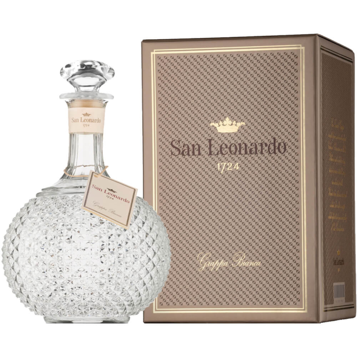 Racchiusa nella bellissima ampolla ispirata a una antica caraffa rinvenuta nelle soffitte di Villa Gresti, la Grappa Bianca di San Leonardo esprime lo stile e l’eleganza che si respira nella tenuta della famiglia dei Marchesi Guerrieri Gonzaga. Prodotta in piccolissime quantità con le vinacce provenienti dai vigneti della tenuta, è un distillato puro, secco e vellutato, perfetto per tranquilli momenti di relax e per un regalo esclusivo e raffinato.