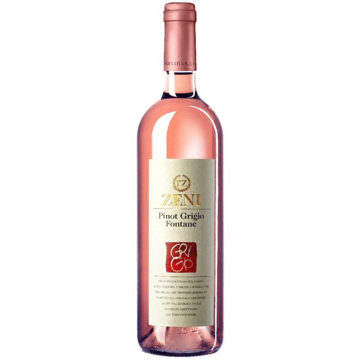La delicata tonalità rosata che ricorda la buccia di cipolla veste con fascino e grazia il Pinot Grigio Ramato Fontane IGT di Zeni, vino sapido ed equilibrato da godere giovane, per assaporare al meglio la nota di pera matura che lo caratterizza e lo contraddistingue. Perfetto con sfiziose torte salate, omelette e insalate di mare.