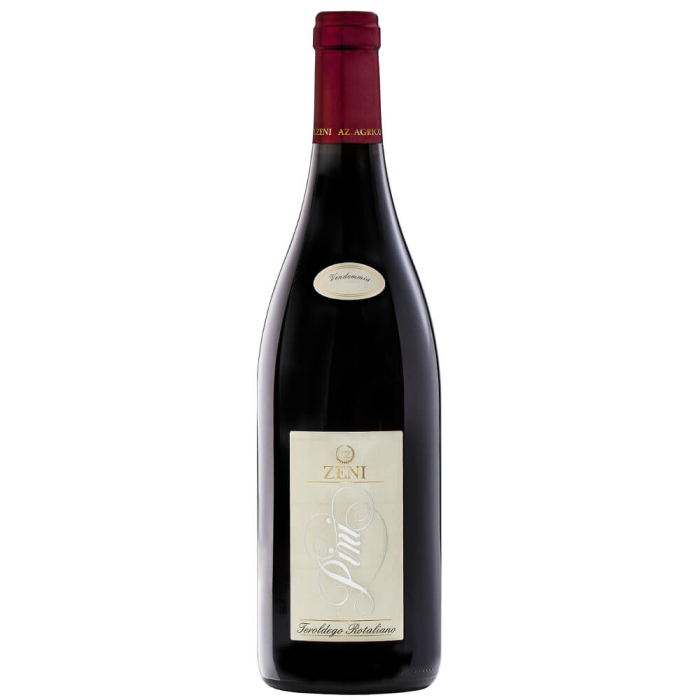 L’appassimento del Teroldego non è una pratica abituale, ma è proprio la voglia di sperimentare nuove strade, nel solco delle tradizioni, che guida Zeni nella creazione di vini straordinari, dove storia e attualità si fondono in perfetta armonia. Il Teroldego Rotaliano Riserva Pini DOC è un rosso dal colore rubino profondo e dalla struttura importante, fragrante di more e lamponi, con una nota di vaniglia tostata. Affina due anni in piccole botti di legno, sei mesi in acciaio e altri sei mesi dopo la messa in bottiglia.