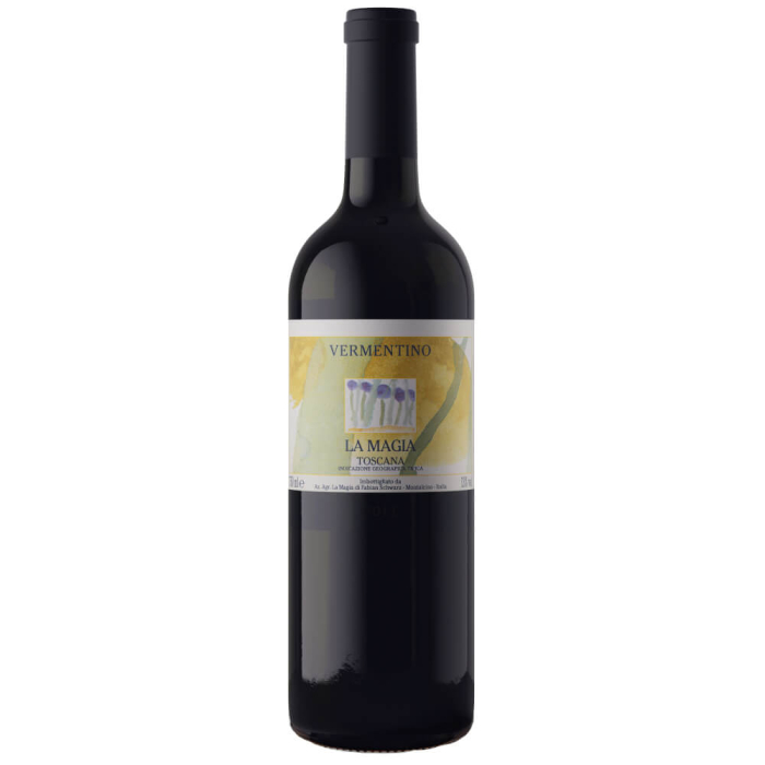 E dopo tanti vini rossi provenienti dal meraviglioso territorio di Montalcino, La Magia ci propone un vino bianco, ottenuto da uve Vermentino: una novità certo, in cui però ritroviamo qualcosa di noto: la bravura e la passione che la famiglia Schwarz mette nel produrre ogni bottiglia. La vinificazione e l’affinamento avvengono in acciaio e in barrique, per esaltare la complessità del variegato bouquet fatto di agrumi, frutti, spezie, erbe aromatiche e fiori di campo. Al palato sorprende la bella freschezza, la decisa acidità, il tocco mandorlato nel finale. Raccomandato per un aperitivo, anche elegante, e per un pranzo o una cena a base di pesce e crostacei.